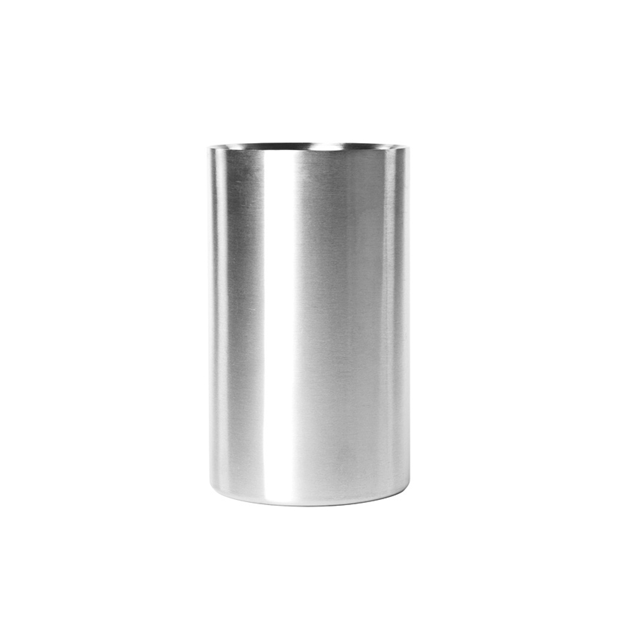 Nerezový chladič na víno nebo sekt o průměru 12 cm, výška 20 cm.
