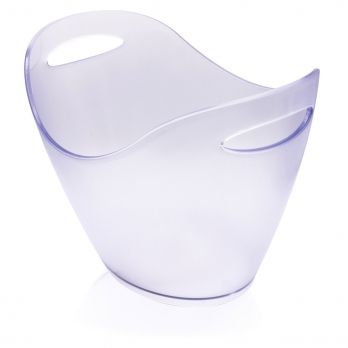 Plastový chladič kónický čirý se dvěma uchy na sekt / víno. Horní průměr 36 cm, spodní průměr 26 cm. Výška je 25,5 cm. Materiál PS.