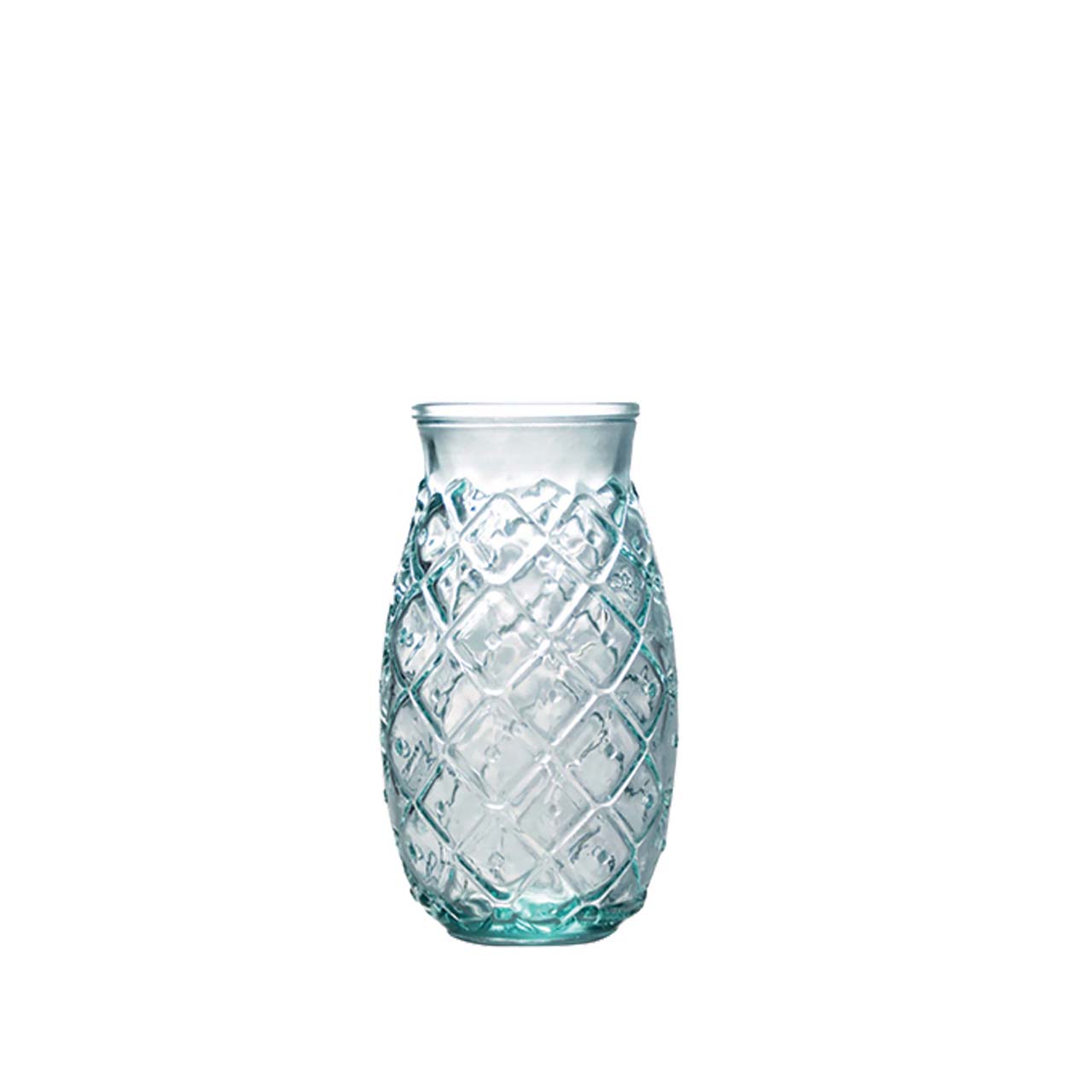 Cocktailová sklenice o objemu 385 ml ve tvaru ananasu je vyrobena ze 100% recyklovaného skla a zaujme svým originálním a hravým designem. Strukturovaný povrch inspirovaný slupkou ananasu dodává sklenici výrazný tropický charakter a vytváří atraktivní vizuální i haptický efekt, díky kterému každý nápoj působí stylově a neotřele. Sklenice je ideální pro servírování koktejlů, long drinků, limonád nebo domácích nápojů a skvěle se hodí jak do gastronomických provozů, tak pro stylové servírování doma.