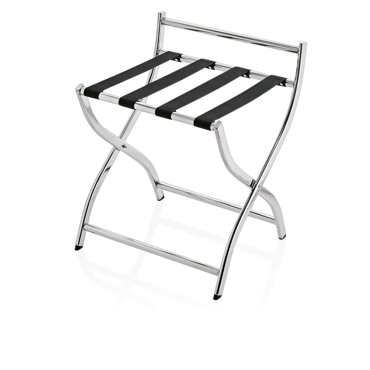 Stojan na zavazadla s ochranou proti poškození stěny, 50,5 x 45 x 51,5/61 cm, leštěná nerezová ocel/chromniklová nerezová ocel/nylon. Vhodné pro použití v hotelu.