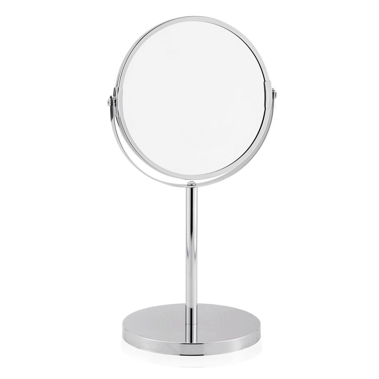 Zrcadlo kosmetické, průměr 17 cm, výška 34,5 cm, chrom.