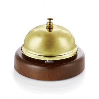 Recepční zvonek, dřevěná podestavba, průměr 9 cm, pozlacený, nerez. Ideální pro profesionální použití v gastronomii. Vysoce kvalitní materiál zajišťuje dlouhou životnost a spolehlivost.