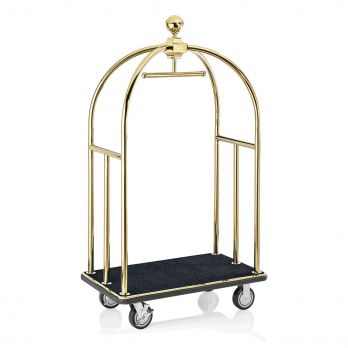Transportní vozík na zavazadla UNITY, 112 x 60 x 185 cm, titanově zlatá, černá barva koberce, chromniklová nerezová ocel. Vhodné pro použití v hotelu.