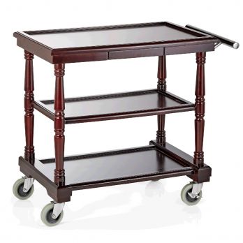 Vozík servírovací, 90 x 50 x 79, dýhované lakované březové dřevo, MDF, chromniklová nerezová ocel. Ideální pro profesionální použití v gastronomii. Vysoce kvalitní materiál zajišťuje dlouhou životnost a spolehlivost.