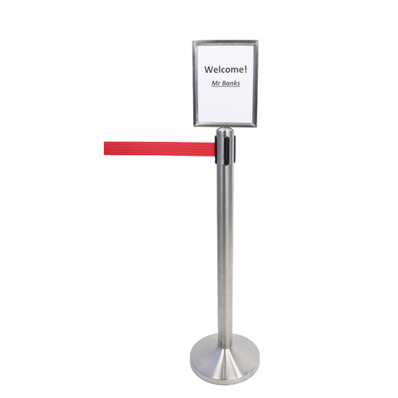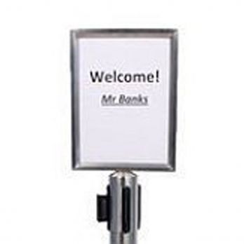 Informační rámeček A4 na hlavici stojanu zábranového systému (Chrome)