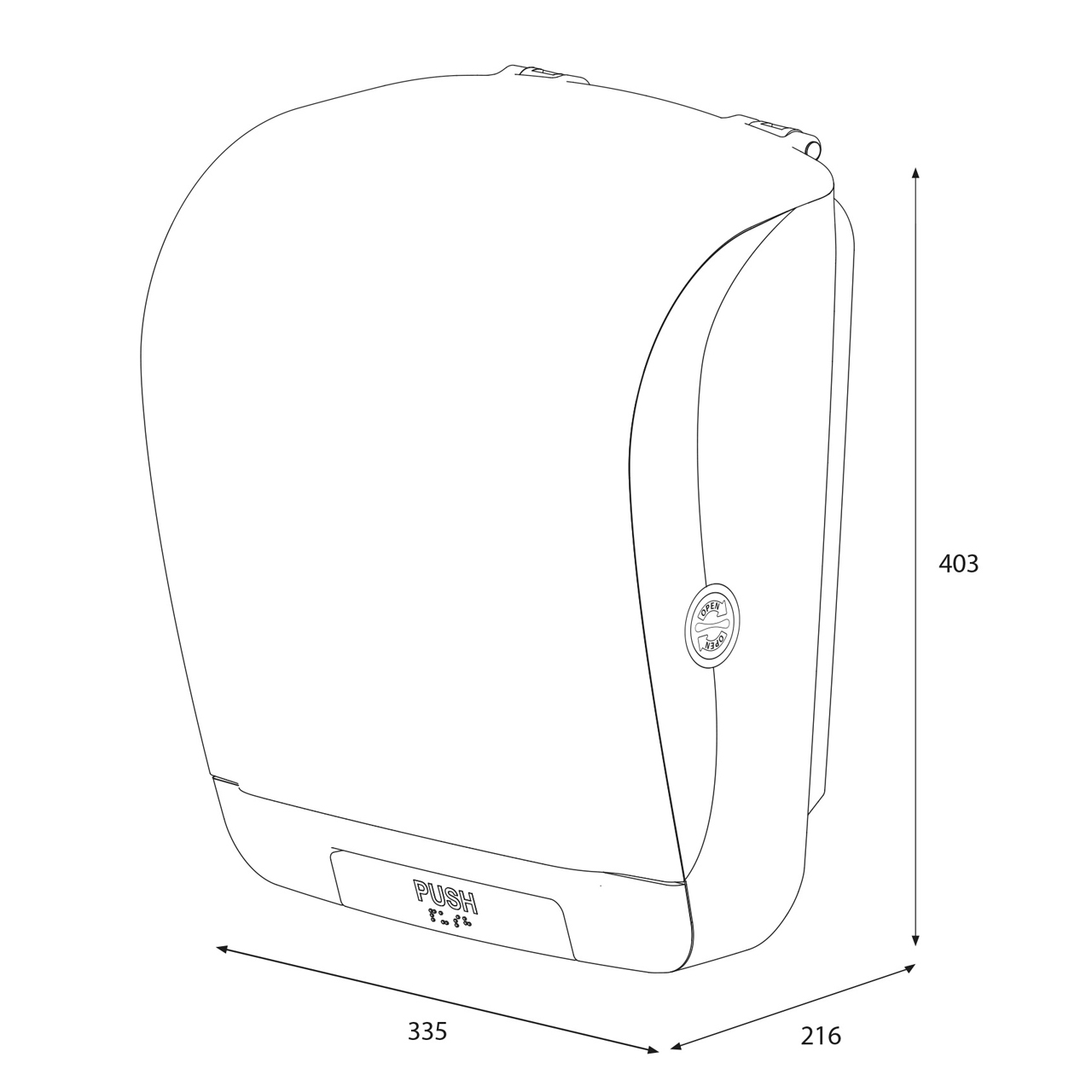Zásobník Katrin systém XL v černé barvě je určen tam, kde je vysoký průchod lidí (stadiony, koupaliště, výstaviště atd.) Pokud papír není viditelný, je k dispozici snadno použitelné tlačítko PUSH pro podání papíru. Rozměry: šířka 280 mm, výška 400 mm, hloubka 228 mm. Řízená spotřeba a minimální odpor při tažení. Díky průhledným bočním panelům lze snadno zjistit kolik zbývá ještě papíru uvnitř.