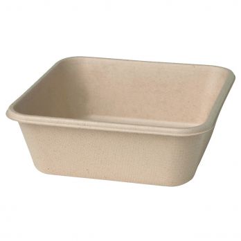 Salátová miska čtvercová hnědá z bagasy o objemu 0,9 l. Šířka 15,5 cm, výška 5,3 cm. Víčko najdete pod číslem 100025839.
