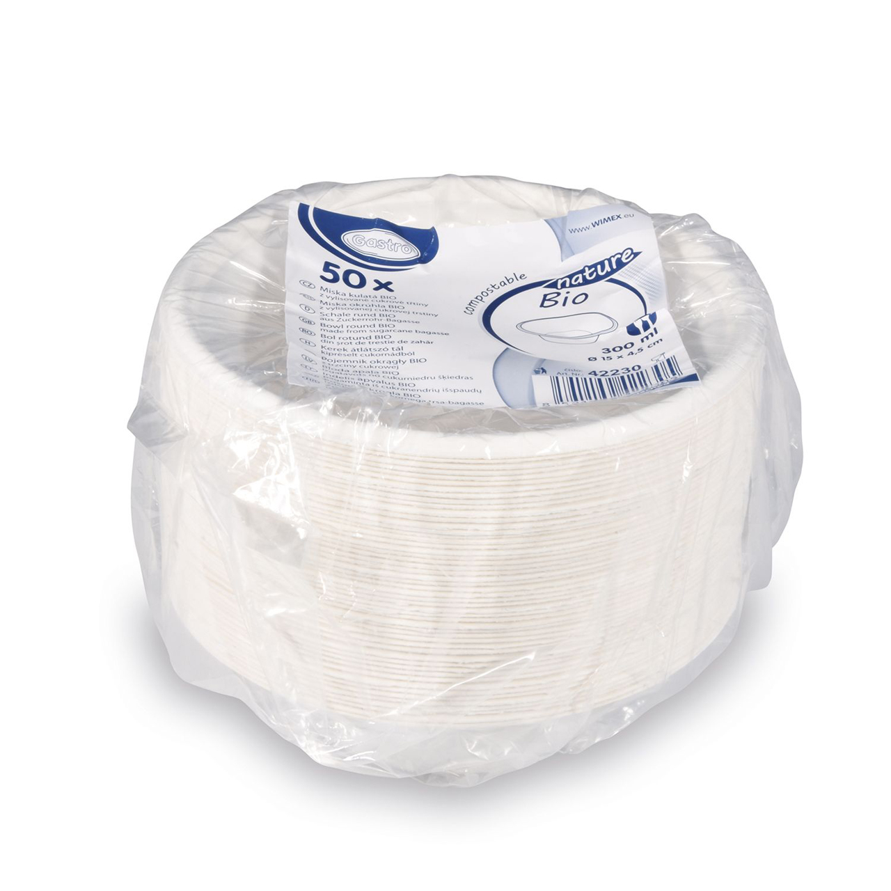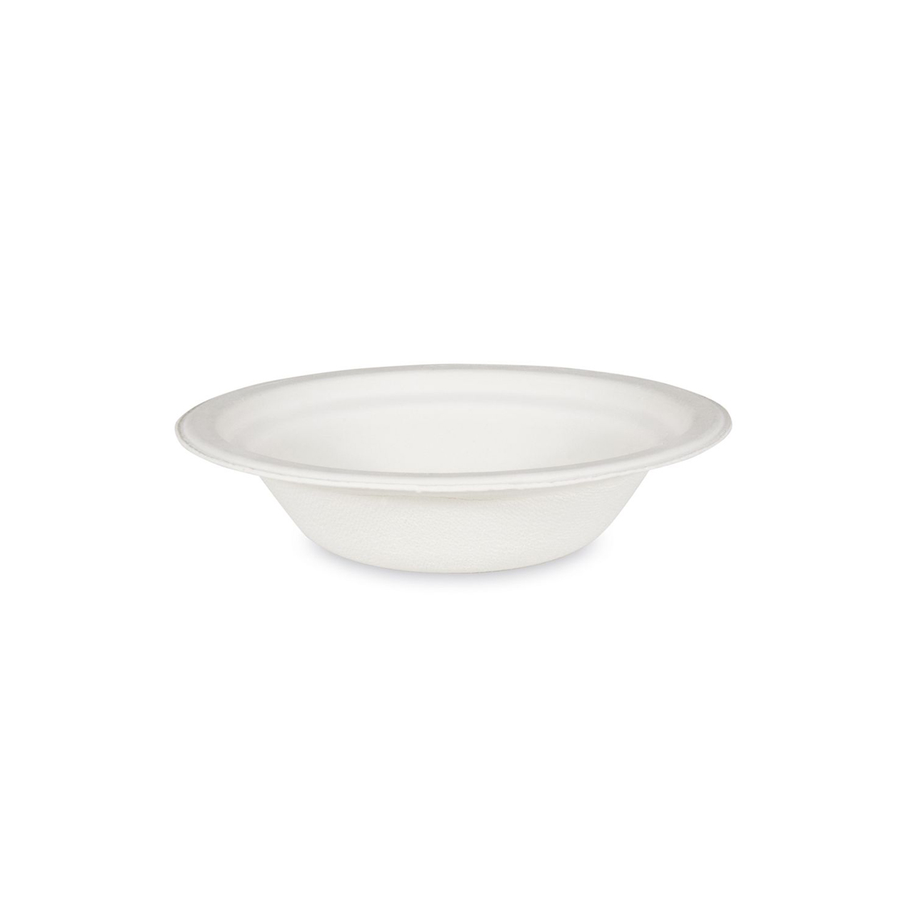Miska z cukrové třtiny o objemu 0,3 l. Výška 4,6 cm, průměr 15,2 cm.