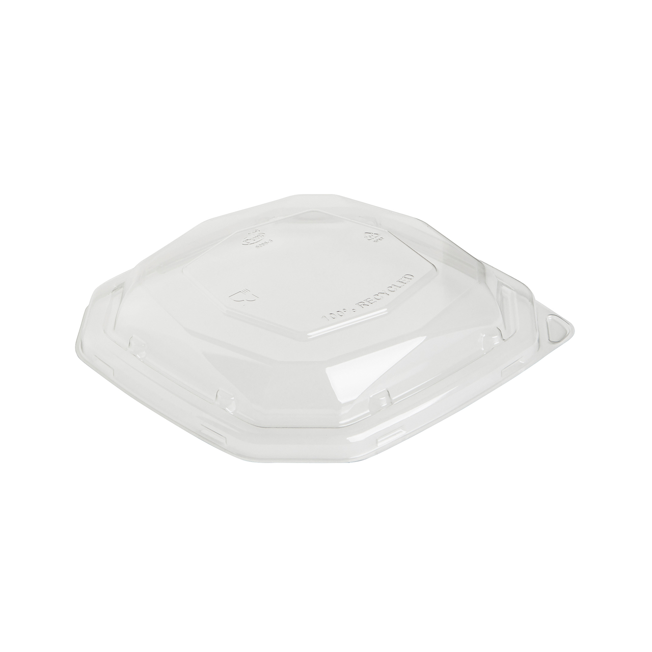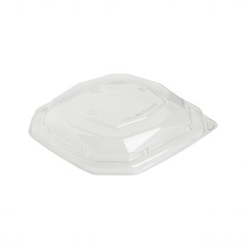 Víčko osmihranné plastové na misku č. 100026373. Materiál recyklovaný PET, max. teplota + 70 C, nemlží se (anti-fog provedení). Průměr 19 cm.