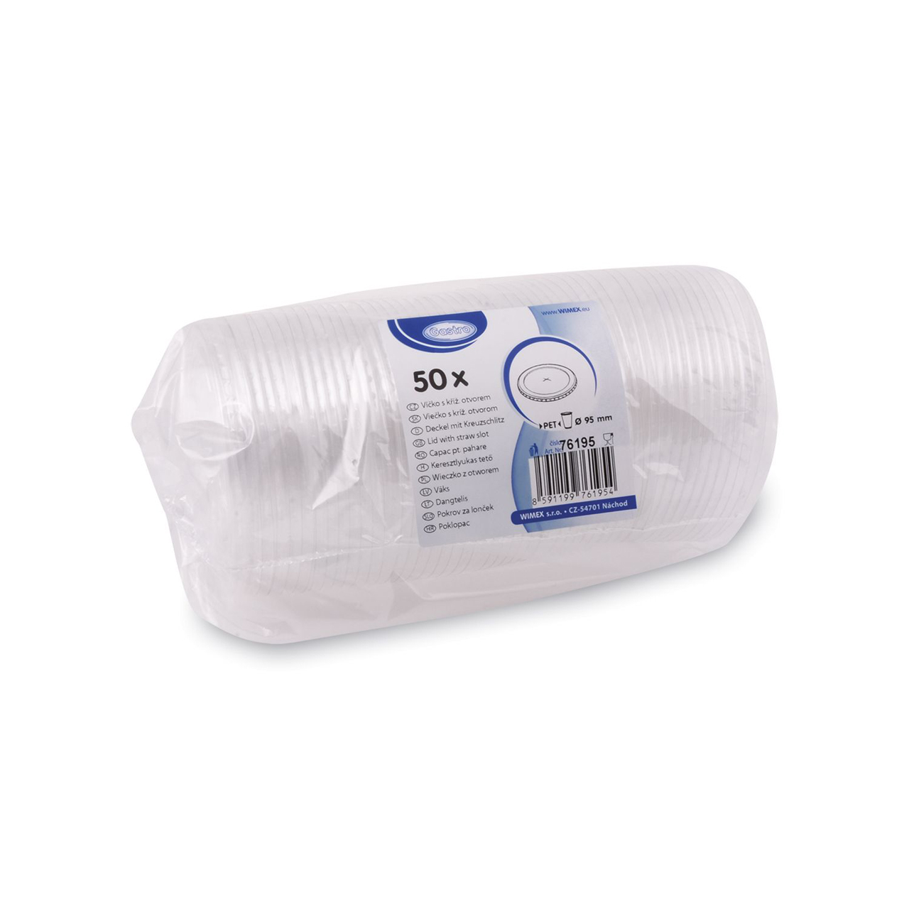 Víčko s křížovým otvorem pro kelímek průměr 95 mm (50 ks)