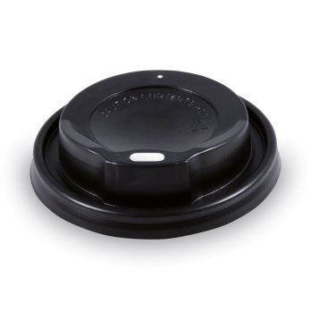 Víčko vypouklé černé pro papírové kelímky průměr 80 mm. Kelímky jsou v nabídce například v bílé barvě č. 100021174, hnědé barvě č. 100030752 nebo s potiskem č. 100023979.