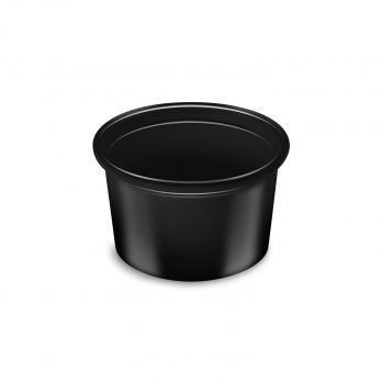 Dressingová miska černá 30 ml (PP), vrchní průměr 4,6 cm, spodní průměr 4 cm, výška misky 2,8 cm. Vhodné víčko č.100023192.