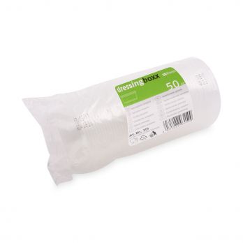 Miska dressingová průhledná 50 ml (PP), vrchní průměr 7 cm, spodní průměr 6 cm, výška misky 2 cm. Víčko najdete pod číslem 100018887.