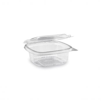 Miska hranatá průhledná s víčkem 250 ml (PET). Specifikace: 11,73 x 11,25 x 4,1 cm.
