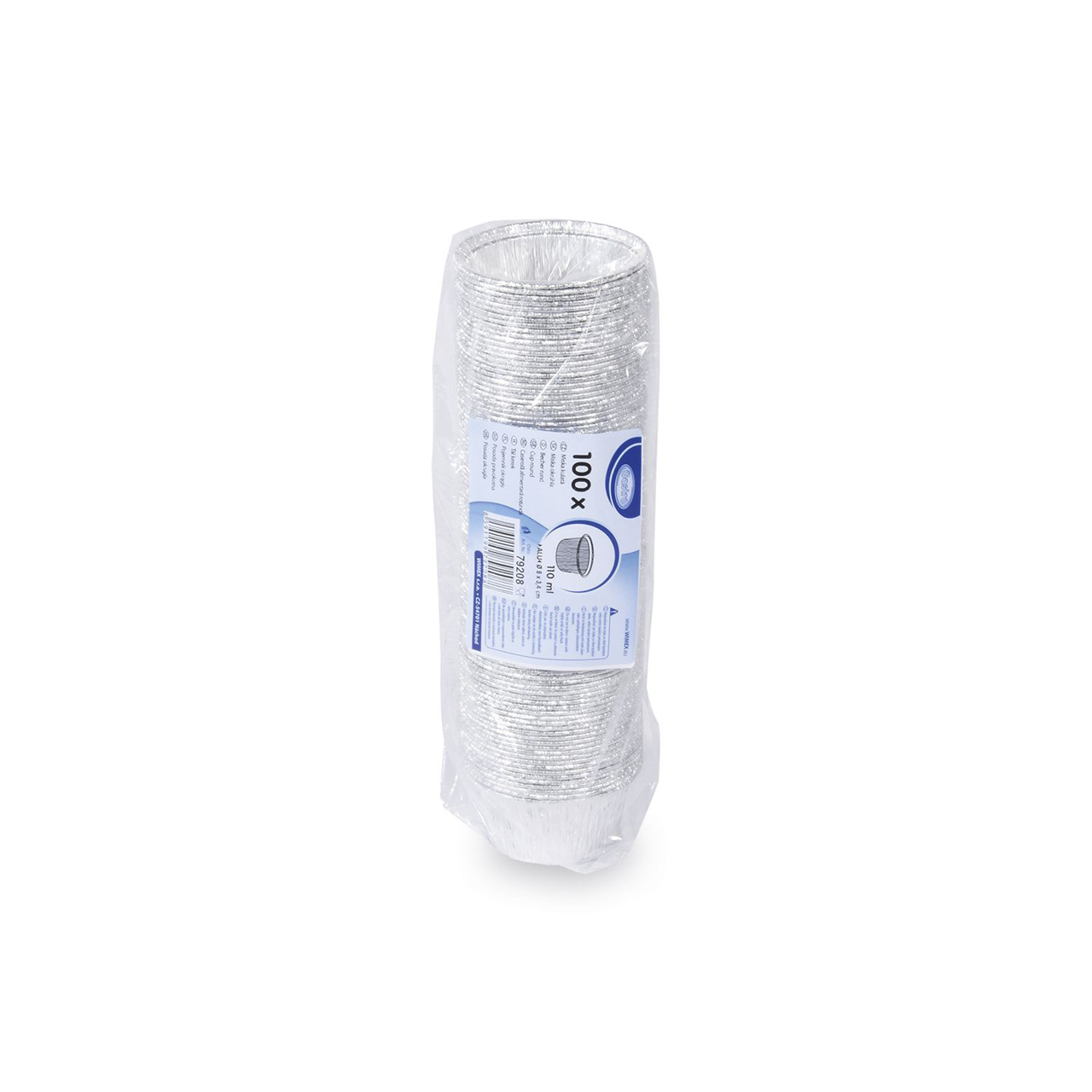 Miska kulatá ALU o objemu 110 ml. Průměr 8 cm, výška 3,4 cm.