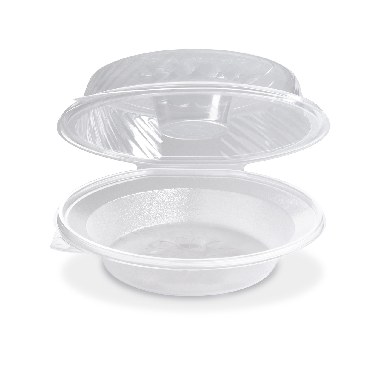 Salátová miska průhledná s vypouklým víčkem a otvorem na dressingovou misku 1600 ml (PP) (25 ks)