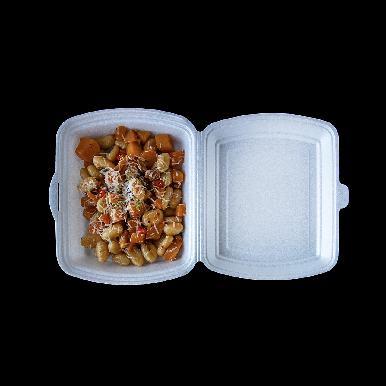 Menubox 1dílný. Materiál XPS. Rozměr 25 x 20,5 x 7,5 cm. V balení je 125 ks.