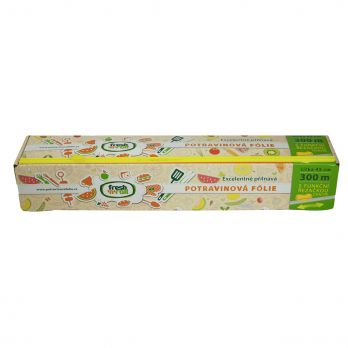 Potravinová fólie s návinem 300 m a šířkou 45 cm. Řezačka je nedílnou součástí balení, aplikuje se pomoci samolepu, který je na řezačce již nalaminován. Síla 9 mikronů. Fólie chrání balené zboží, uchovává aroma a potraviny čerstvé. Vyznačuje se vysokým leskem a transparentností, zlepšuje vzhled zboží. Má výborné mechanické vlastnosti a přilnavost. Fólie neobsahuje ftaláty, aditiva jsou na přírodní bázi. Tepelná odolnost je v rozsahu -40°C až 100°C. Snadno se přizpůsobuje balenému výrobku. Úprava antifog odstraňuje počáteční zamlžení. Zabraňuje prostupu pachů a je vhodná do mikrovlné trouby.