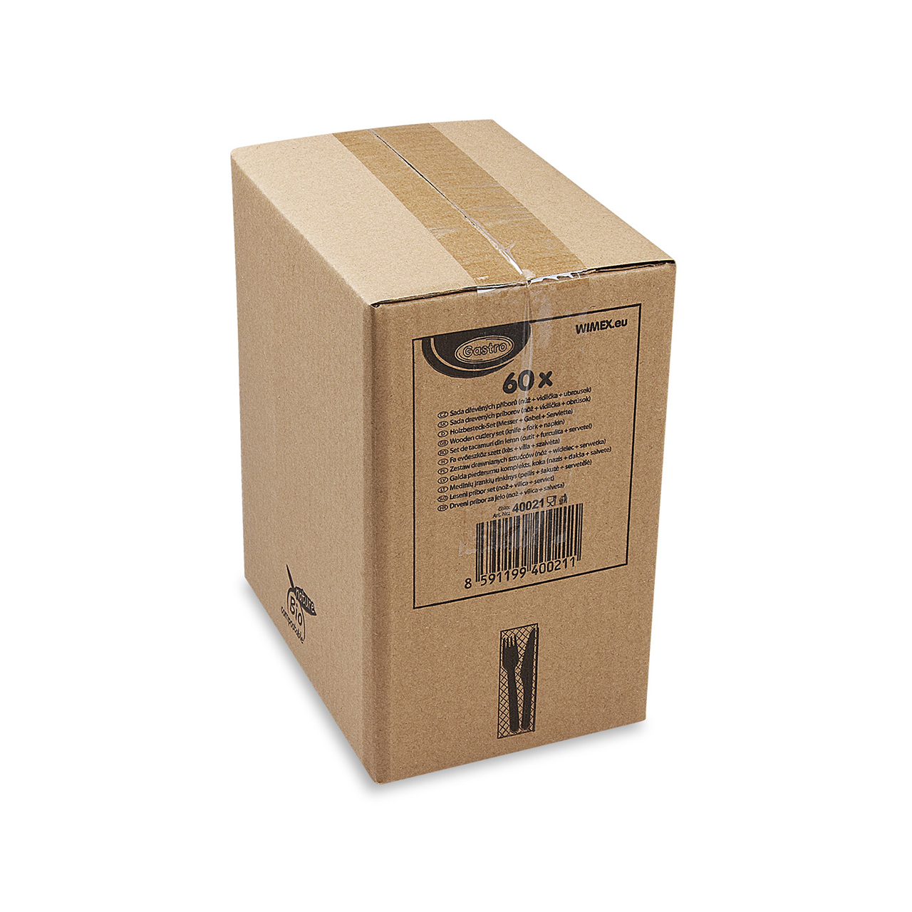 Sada dřevěných příborů (Nůž, Vidlička a Ubrousek) (60 ks)