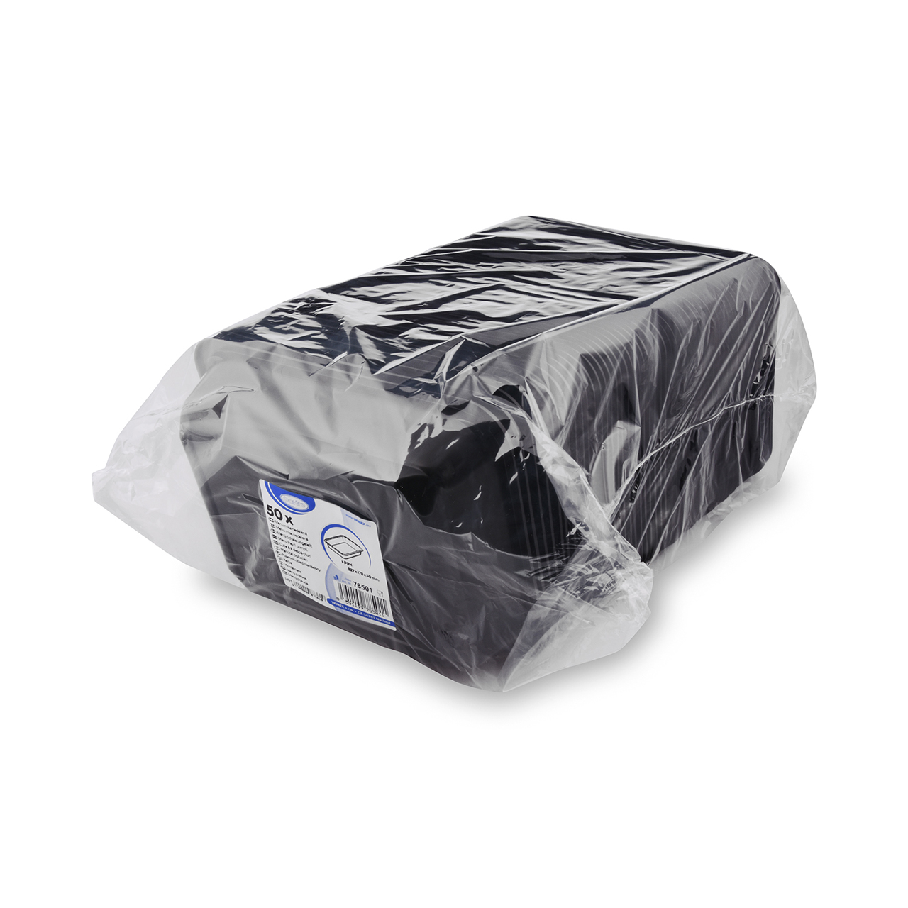 Menu mísa (PP) 1dílná černá 22,7 x 17,8 x 5 cm. Rozsah použití -20°C až +100°C. Vhodné pro zatavovací stroj 100030438. Zatavovací fólie najdete pod číslem 100030439.