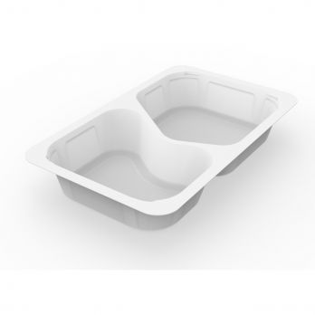Miska 2dílná PP 1/4 GN o objemu 630 + 490 ml bílá. Rozměr 26,3 x 16,1 cm, výška 4,3 cm. Vhodné do balicího stroje DF10 (číslo 100011682), 2dílná kazeta do stroje č. 100026139. Zatavovací fólii najdete pod číslem 100016902.