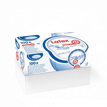 Rukavice latexové bílé, nepudrované M (100 ks)