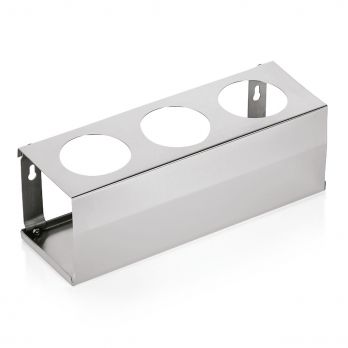 Držák na dávkovací lahve pro 3 lahve, 32,5 x 11 x 12 cm, chromniklová nerezová ocel. Ideální pro profesionální použití v gastronomii. Vysoce kvalitní materiál zajišťuje dlouhou životnost a spolehlivost.