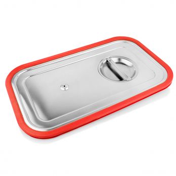 Nerezové víko na gastronádobu GN 1/1 opatřené silikonovým těsněním. Zabraňuje vylití pokrmu.
