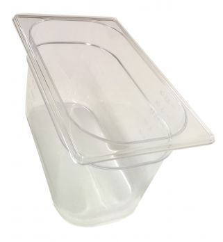 Polykarbonátová gastronádoba GN 1/4, hloubka 200 mm. GN jsou vybaveny značením objemu (l). Teplotní omezení od - 30 °C- + 100 °C.
