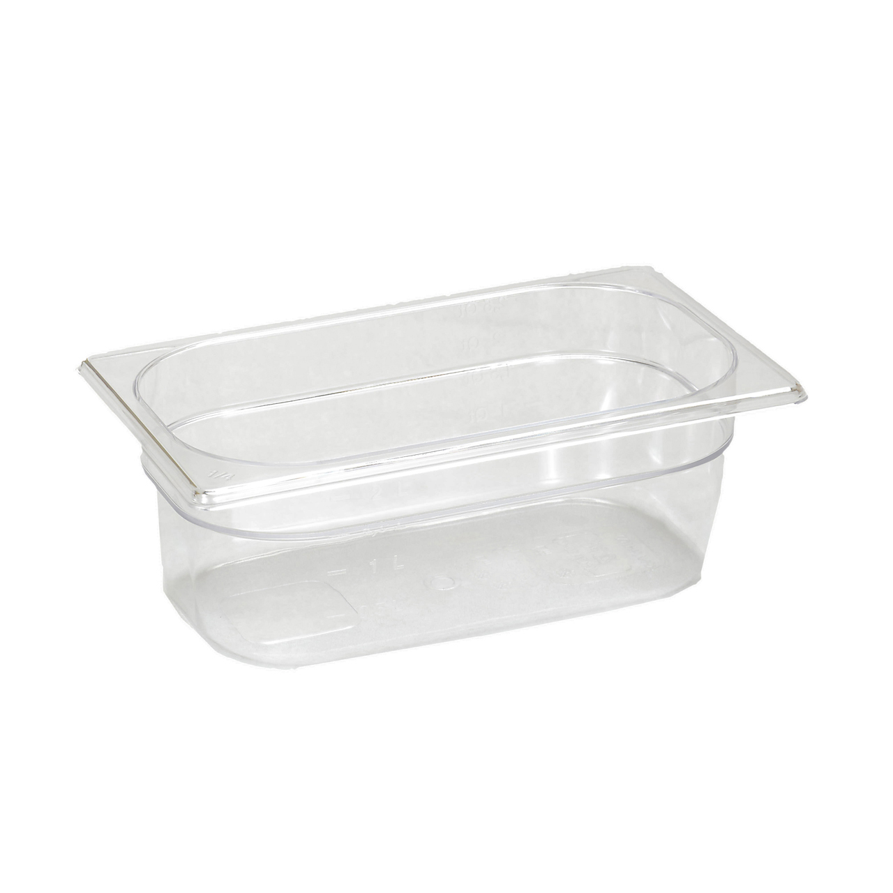 Polykarbonátová gastronádoba GN 1/4, hloubka 65 mm. GN jsou vybaveny značením objemu (l). Teplotní omezení od - 30 °C- + 100 °C.