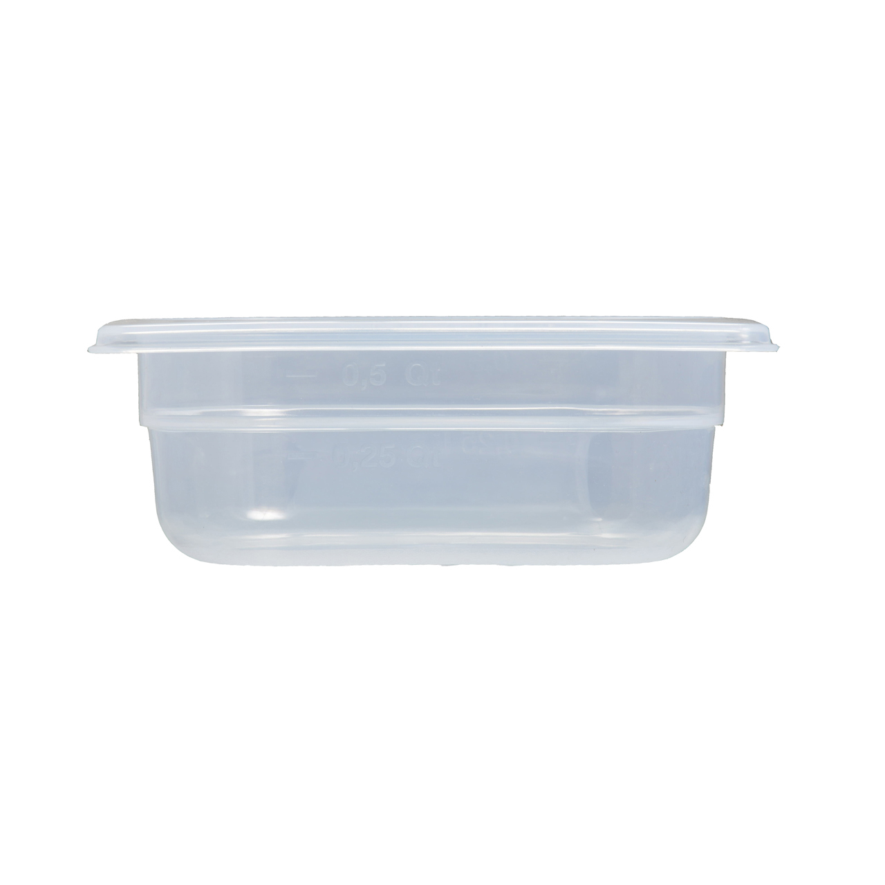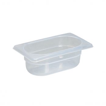 Polypropylénová gastronádoba GN 1/9, hloubka 65 mm. Jsou vhodné pro běžné použití, především do mrazniček. Jsou odolné vůči teplotám od - 30 °C do + 70 °C.