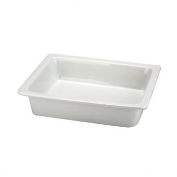 Porcelánová Gastronádoba GN 1/2, objem 2,8 l. Odolná proti extrémním teplotám, vhodná do myčky, mrazničky, mikrovlnné trouby a trouby.