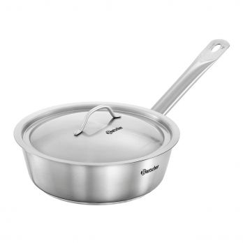 Nerezová pánev s víkem na všechny typy sporáků, včetně indukce. Tepelně izolované rukojeti, vhodný na všechny typy sporáků i indukci. Materiál včetně rukojeti nerezová ocel. Pánev pro smažení, pečení, ohřívání, dušení. Pečicí plocha broušená ušlechtilá ocel.