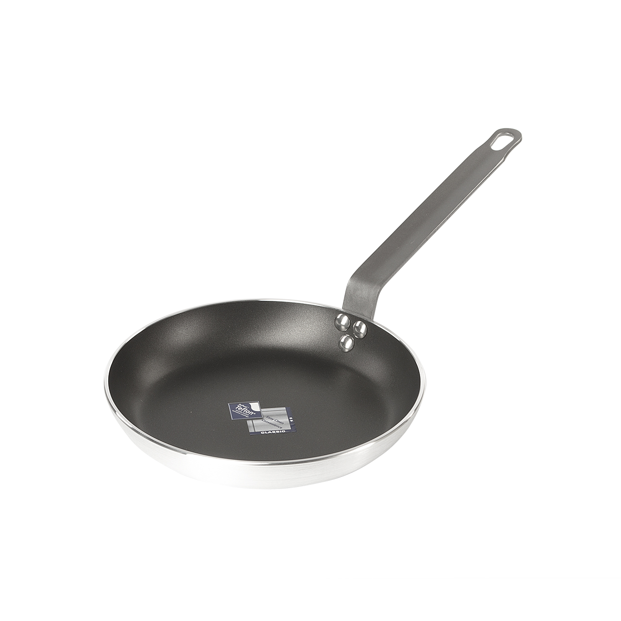 Hliníková pánev potažená odolným teflonovým povrchem. Vhodná na plynové a elektrické vařiče.