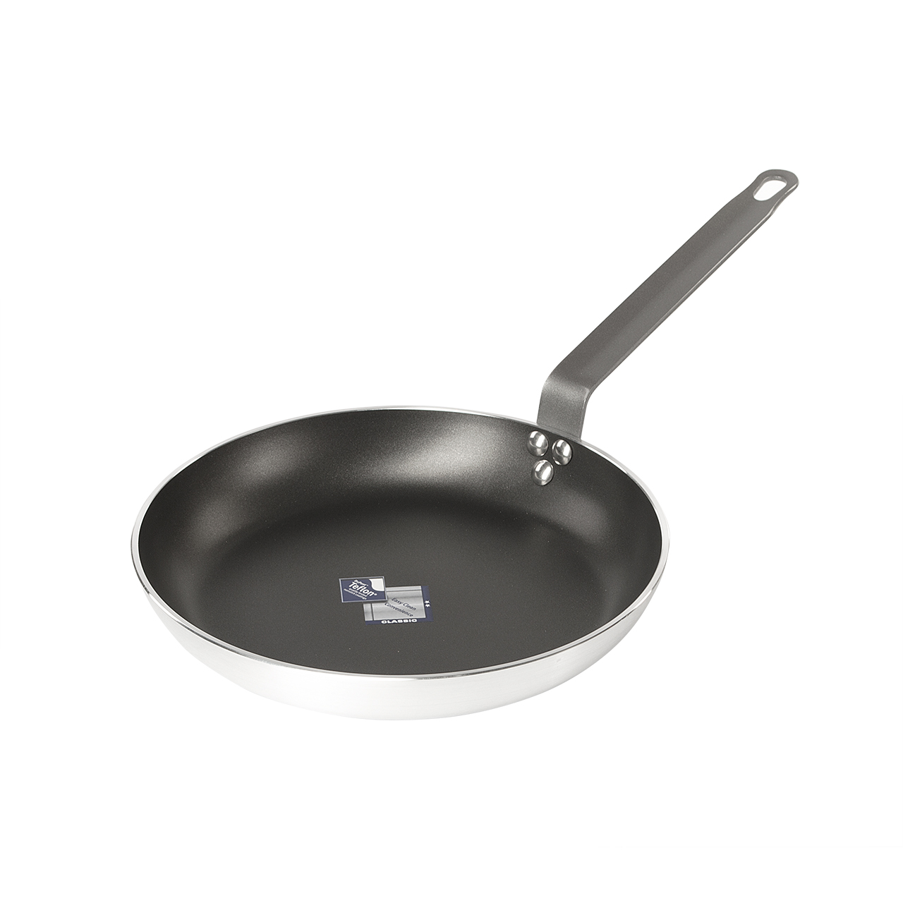 Hliníková pánev potažená odolným teflonovým povrchem. Vhodná na plynové a elektrické vařiče.