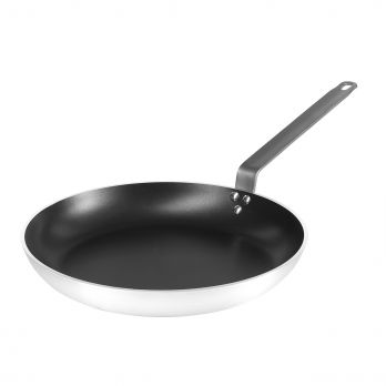Hliníková pánev potažená odolným teflonovým povrchem. Vhodná na plynové a elektrické vařiče.