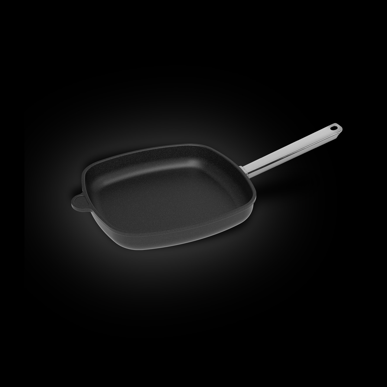 Délka 530 mm je uvedena vč.držadla. Nepřilnavý povrch vytvořený ze speciálního materiálu Lotan s antibakteriálním efektem. Zesílená vrstva zpevněná minerálními částicemi pro zajištění vysoké odolnosti proti oděru. Protikorozní vrstva pro ochranu před agresivními detergenty, ovocnými a octovými kyselinami. vrstva z oxidu titanu - je tvrdá téměř jako diamant, tepelně odolná do 240 st C, extrémně odolná proti poškrábání a řezům.