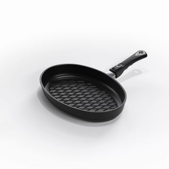 Pánev o rozměrech 35x 24 cm, vhodná i pro indukční vaření. Speciálně tvarované dno vytváří efekt grilování. Díky masivnímu dnu umožňuje rychlou a rovnoměrnou distribuci tepla a tím snížení doby vaření. Opatřena speciálním nepřilnavým povrchem LOTAN . Dodáváme s nerezovou rukojetí
