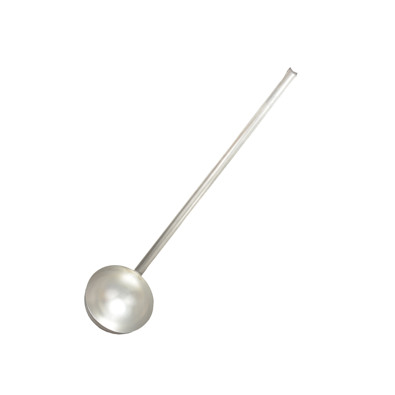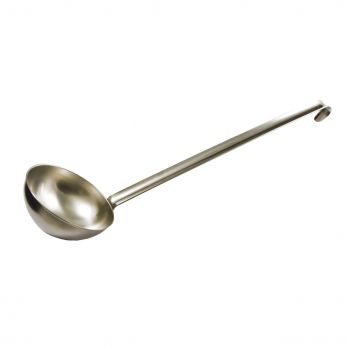 Nerezová naběračka s háčkem, pr. 20 cm.Český výrobek.