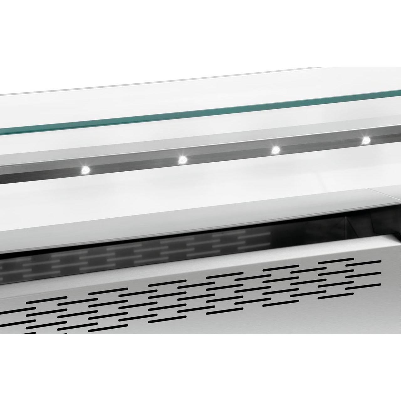 Mobilní front cooking stanice Bartscher se dá použít v interiéru i exteriéru. Atraktivní robustní provedení, 2 filtrace vzduchu. Až pro 3 stolní tepelná zařízení dle potřeby. Stanice má zabudované 4 ks GN 1/9-100 mm pro oleje, omáčky či příbory a pomůcky na vaření. Možnost regulace ventilátorů na 4 úrovních. LED osvětlení, celonerezové provedení. Štěrbinové tukové filtry, zeolitové litry zachycují pachy. Rozebíratelná skleněná dechová clona. Stanice má 4 otočná kolečka, 2 bržděná. Spínač ON/OFF. 5 zabudovaných zásuvek: 3 x 230 V, 2 x 400 V. Rozměry plochy pro tepelná zařízení: 1208 x 600 mm (Š x H) Dodáváno bez nerezového pojezdu a postranní odkládací desky. Objednávejte samostatně z naší nabídky.