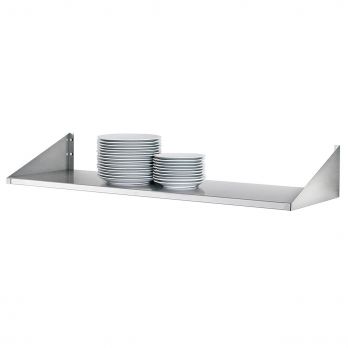 Nástěnná police v těžkém provedení. 1 police na talíře a dva boční díly. Včetně upevňovacího materiálu. Jednoduchá montáž. Materiál nerezová ocel. Různé délky, uvedeno Š x H x V mm.
