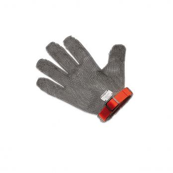 Protipořezová řeznická rukavice se skládá z nerezových drátěných kroužků, které spolu vytvoří dokonalou ochranu proti pořezání. Veli kost M. Pro větší pohodlí při práci se pod rukavici navlékne nejdřív bavlněná rukavice, která ruku udrží po celou dobu v teple. Jako druhá se navlékne rukavice igelitová. Následuje protipořezová řeznická rukavice a nakonec se všechny rukavice zafixujou napínákem r ukavic. Průměr drátu, ze kterého jsou kroužky vyráběné je 0,8mm a průměr každého oka je 5,8 mm. Rukavice Euroflexjsou odlišeny barev ným řemínkem podle velikosti.