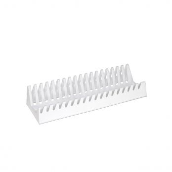 Plastový stojan na talíře o rozměru 37,5 x 12,5 cm, bílá barva