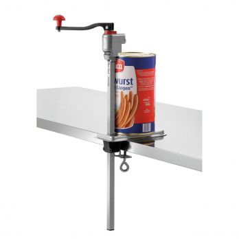 Otvírák konzerv pro konzervy až do výšky 56,5 cm. Stolní otvírák na konzervy z ušlechtilé oceli pro stolní desky šířky max. 60 mm. Výškově nastavitelný. Dodáván včetně nože a kolečka. Materiál ušlechtilá ocel v kombinaci s odolným černý plastem. Plocha stání Š 131 x H 294 mm. Upevnění pomocí svorek (připraveno pro našroubování). Klikový pohon s pružinovým mechanismem.