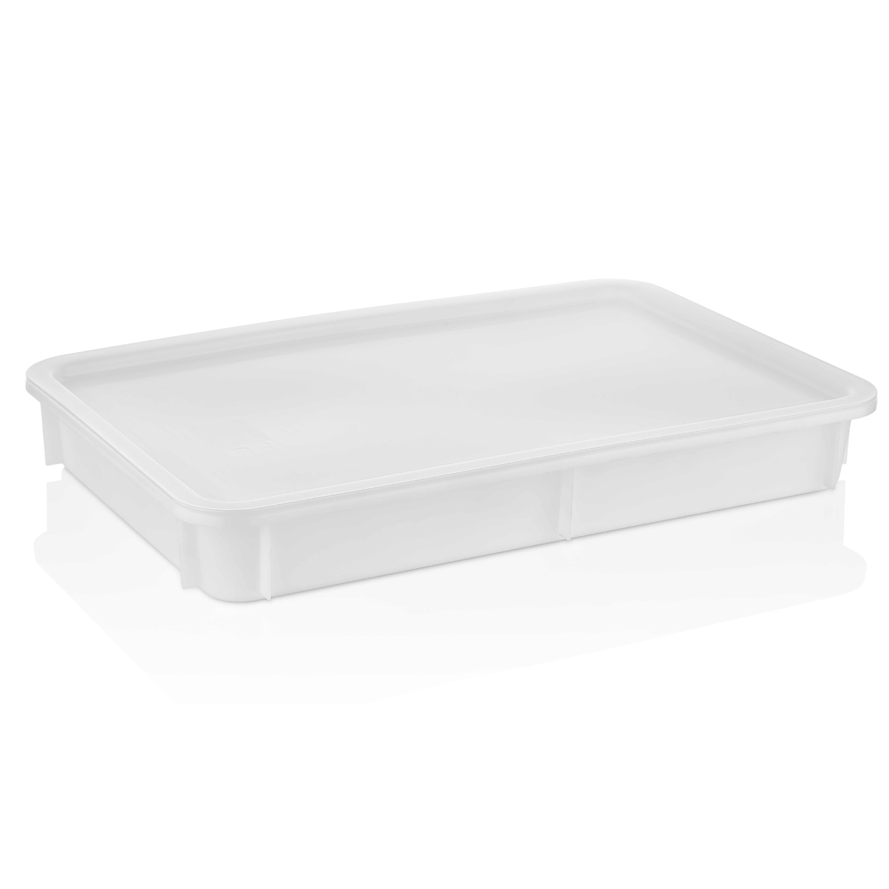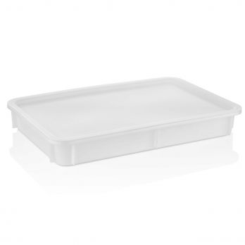 Krabice na uložení těsta na pizzu z odolného plastu. Rozměr 60 x 40 cm, výška 7,5 cm. Vhodná do mrazáku i do mikrovlnné trouby, lze mýt v myčce. Možné opatřit plastovým víčkem.