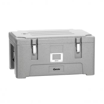 Nevyhřívaný přepravní termobox na studené a teplé pokrmy. S horním plněním lze bezpečně přepravit gastronádoby GN 1/1 do max. hloubky 150 mm. Teplotní rozsah: -40 °C až 90 °C. Barva šedá. Přihrádka na jídelní lístek. Ergonomické rukojeti pro přenášení, přepínací západky, dvojité stěny, teplotní ztráta cca 5 °C / hod., stohovatelný. Objem: 25 litrů. Kompletně snímatelné víko umožňuje snadné čištění. Rozměry: Š 630 x H 430 x V 320 mm. Hmotnost: 10,3 kg. Gastronádoby nejsou součástí dodávky.