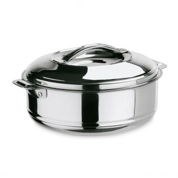 Izolovaný zásobník na přepravu pokrmů, 3,5 l, průměr 30 cm, chromniklová nerezová ocel. Vynikající volba pro moderní gastronomii i náročné domácí použití.