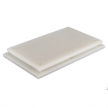 Plastová krájecí deska / prkno o rozměru 40 x 25 cm, výška 1,2 cm. Protiskluzové nohy. Barva bílá