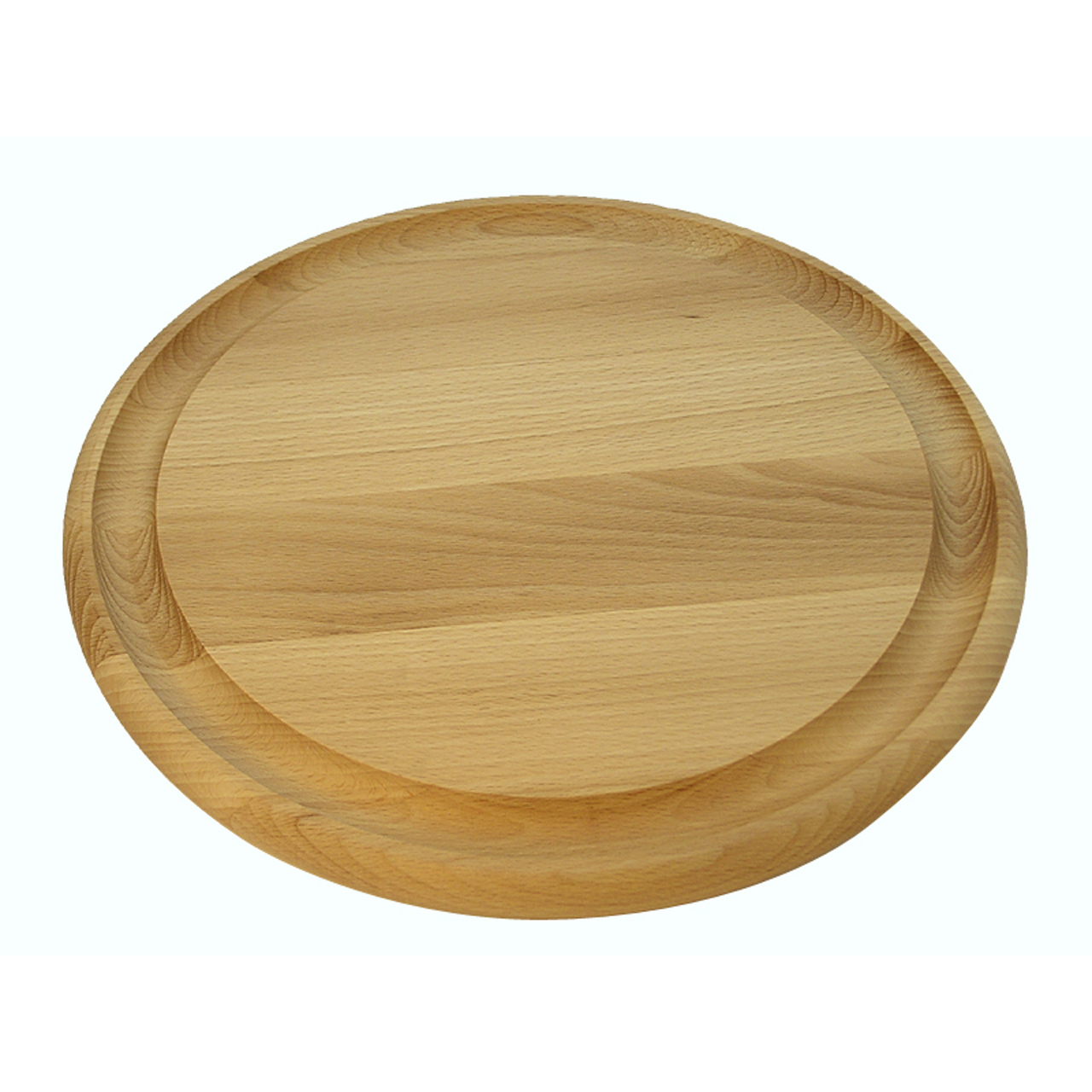 Dřevěné prkénko s drážkou, kulaté, průměr 28cm, síla 1,9cm, z bukového dřeva a s naolejovaným povrchm