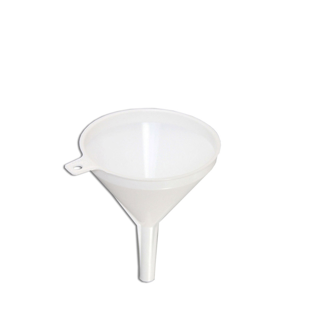 Plastový trychtýř, průměr 12cm, s ouškem, bílá barva